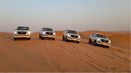 În timp au mai urmat și în alte țări asemenea distracții cu mașini 4×4 care sfidează…fizica, luând în bot dunele sau „prăbușindu-se” pe pante abrupte. Imaginile și senzațiile nu sunt recomandate cardiacilor și fricoșilor. Mai întâi s-au dezumflat parțial roțile pentru o mai bună aderență la nisip. Ne aflăm în zona nisipurilor din „Wahiba”, unde dunele se pot înălța până la vreo 150 metri înălțime, au o lungime de 200 km lungime și o lăţime de 100 km, fiind străbătute de beduini nomazi. Vai de mama lor! Șoferii ne poartă nebunește prin deșert, peisajul fiind în continuă transformare. Vehiculul cu nr. 2 în care am fost repartizați de la început este condus de Ikram, un tinerel, subțirel, brunețel și taciturnel. Îl întreb una, alta, fac câte o glumă, dar nu e comunicativ. Când ne oprim pe la obiective, ne zorește precum li se comandă pușcașilor americani: „Go,go,go!”