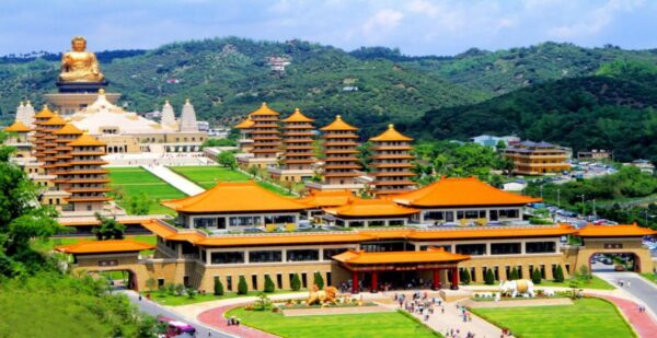 Complexul Fo Guang Shan este cel mai cunoscut Centru Memorial Buddha din Taiwan. Design-ul a fost inspirat de o stupă indiană. Întregul perimetru se află la poalele Celei mai înalte Statui care–l înfățișează pe Buddha așezat! Există mai multe poziții în care este imortalizat: în picioare, așezat, înclinat pe o parte și culcat. El aduce fericirea oriunde se găsește. Se crede ca prin frecarea…burții lui, care este voluminoasă, (un gest foarte popular printre credincioși și turiști) va veni norocul și bogăția asupra persoanelor respective. Eu însumi am efectuat acest ritual de nenumărate ori în diferite locuri de pe Terra, având ulterior parte de multă baftă și…avere. (Spirituală, desigur!)