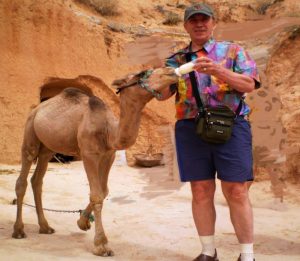 Într-o curte se afla un pui de dromader. Proprietarul isteț s-a gândit să scoată un profit și de pe urma „micului…cocoașat”. L-a legat de un picior iar turistul dornic de un instantaneu „cool” primea (contra-cost) o sticluță de lapte și hrănea animalul pofticios.