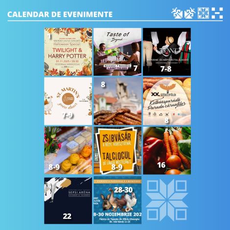 Pe 22 noiembrie, Arena Sepsi din Sfântu Gheorghe va găzdui Turneul Internaţional de Karate Saint George Open, iar între 28 şi 30 noiembrie, la fosta Fabrică de Ţigarete din Sfântu Gheorghe se va desfăşura Expoziţia naţională de păsări şi animale mici.