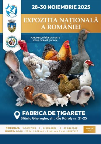Între 3.500 și 4.000 de animale mici, provenind de la peste 50 de organizații de crescători din țară, vor putea fi văzute în cadrul  Expoziției Naționale de Animale Mici care va fi organizată în perioada 28–30 noiembrie, la fosta Fabrică de țigarete din Sfântu Gheorghe.