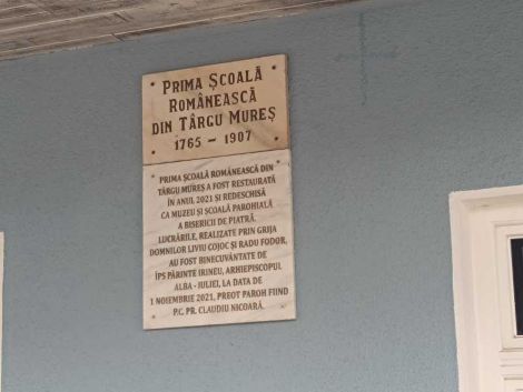 Prima școală românească din Târgu Mureș, care a funcționat între 1765-1912 în curtea Bisericii Bob, cunoscută ca Biserica de Piatră, a fost redeschisă ca școală parohială după ce a fost restaurată de un preot revenit în țară din Spania, Claudiu Nicoară, fost secretar al episcopului Timotei al Spaniei și Portugaliei și diacon al acestuia, apoi preot paroh la Burgos.„Se știe că la 1768 prima școală românească exista la Târgu Mureș. Românii care și-au construit biserica, 60 de familii, s-au gândit să ridice și o școală pe lângă biserică, fiind primii dascăli preoții care au slujit aici. Apoi știm că din 1912 a fost închisă, n-a mai fost folosită aproape o sută de ani. A fost o vreme locuință pentru îngrijitorul cimitirului. Între 1988-1990, pe vremea episcopului Emilian Birdaș al Alba Iuliei, edificiul a fost renovat, iar școala a fost reconstruită după același model vechi. O vreme a fost folosit spațiul pentru Liga Tinerilor Creștini Ortodocși, iar din 2010 până în 2020 a fost efectiv închisă. Când am preluat această parohie, prima școală românească era un depozit plin cu tot felul de lucruri, unele vechi, autentice, pe care le-am păstrat, volume de cărți, farfurii foarte vechi, ștergare vechi și am pus la intrare o bibliotecă și un mic muzeu care poate fi vizitat. Primul obiectiv al nostru a fost acela de a reda școlii dimensiunea istorică pe care o merită și valoarea pe care trebuie să o aibă în ochii târgumureșenilor”, a declarat presei preotul ortodox Claudiu Nicoară.