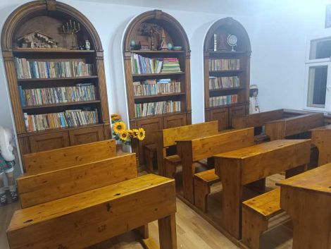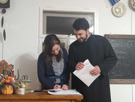 ”Ne-am întors în țară pentru copii, fiindcă nu am văzut un viitor bun, un echilibru în viața copiilor mei în fața unei societăți străine. Și pentru că aici au fost posturi vacante, aici am candidat și am reușit. Împreună cu soția, Cosmina, cu alți credincioși buni ai parohiei și cu câțiva sponsori, am reușit să renovăm exteriorul și interiorul școlii, iar de atunci avem două grupe de copilași cu care lucrăm (între 3 și 7 ani și între 7 și 12 ani). Avem două săli, una mai mică în care sunt jucării și cealaltă o sală cu bănci pe care le-am construit antichizat, pentru ca să fie în spiritul secolelor trecute”, a afirmat Claudiu Nicoară.