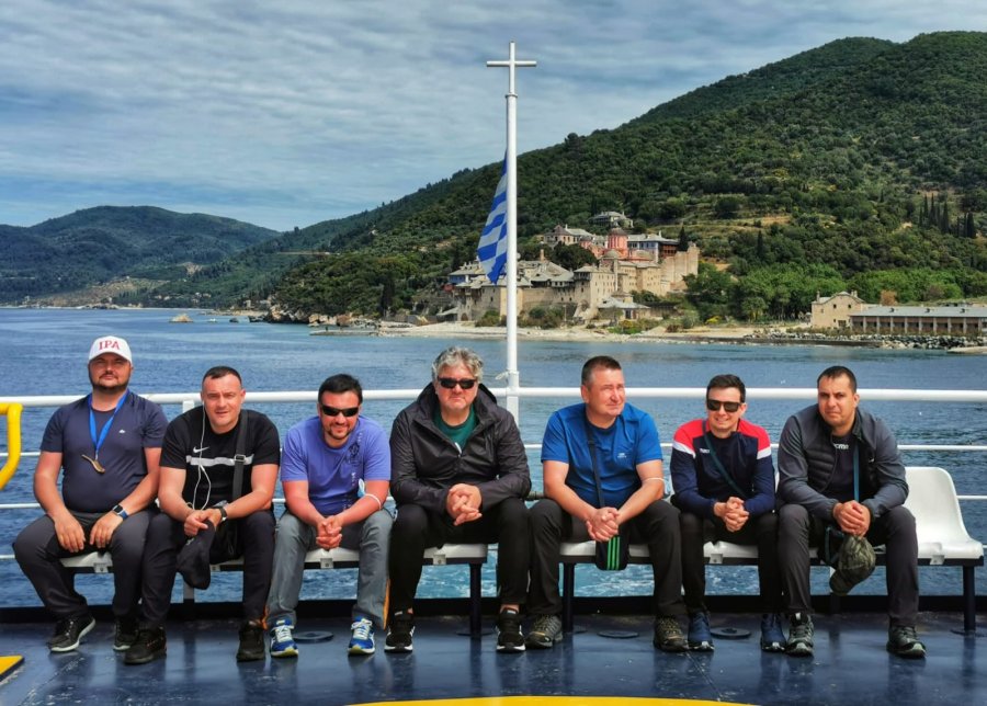 A doua zi, după o călătorie de trei ore şi jumătate cu feribotul, nava care purta grupul de pelerini din Miercurea Ciuc a acostat la unul dintre cheiurile promontoriului, spre Capitala Muntelui Sfânt.