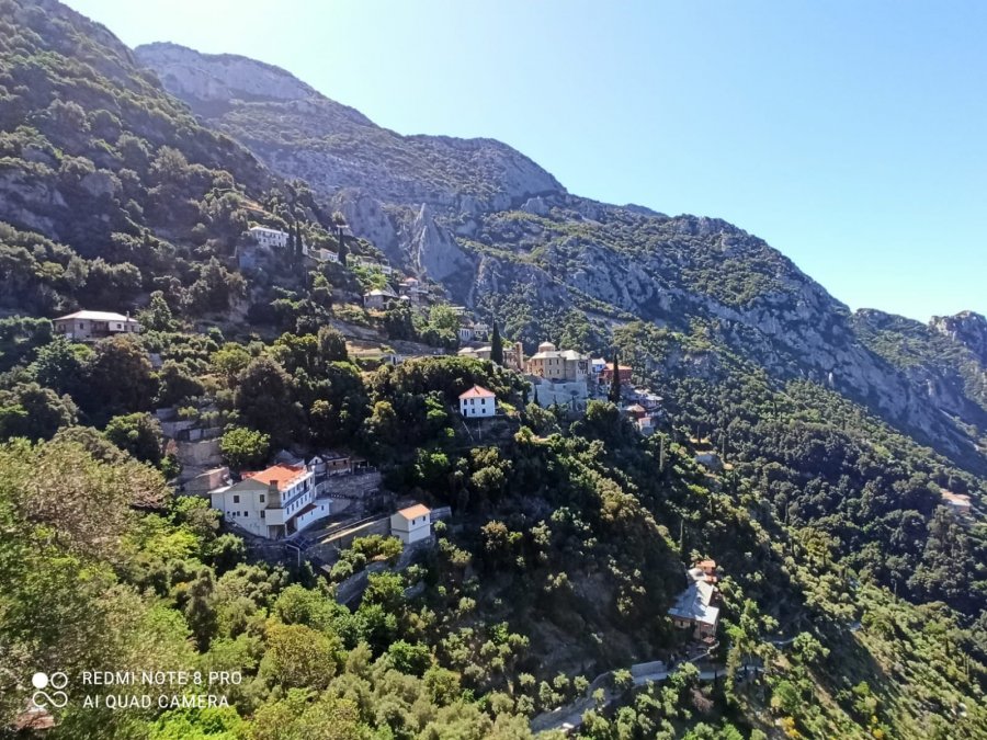 În jurul orei 11:30, după două ore de mers, au ajuns la Schitul „Sfânta Ana”, unde au făcut un popas „de hidratare”. La mai puţin de o jumătate de oră de acolo, se întrezăreşte intersecţia de unde începe drumul spre culme. Iar la ora 16:00 au ajuns la Capela Panaghia, aflată la 1.500 de metri altitudine.