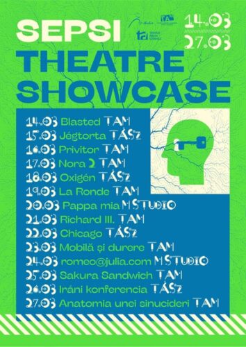 „Jegtorta (Tortul de gheaţă)” în regia lui Szilvay Mate, „Oxigen” în regia lui Palffy Tibor, „Chicago” regizat Puskas Zoltan şi „Irani konferencia (Conferinţa iraniană)” sunt spectacole montate de teatrul maghiar „Tamasi Aron” care vor fi prezentate, printre altele, în cadrul Sepsi Theatre ShowCase.