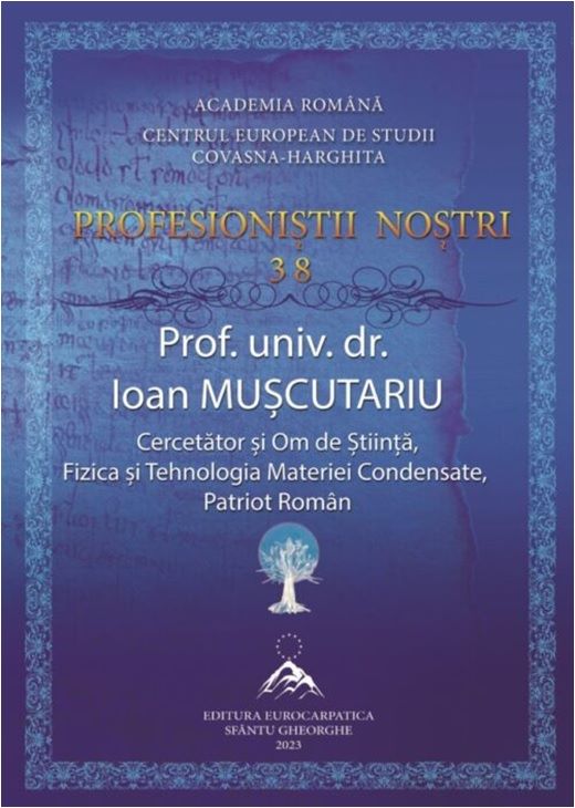Numărul 38 din Colecția „Profesioniștii noștri” este dedicat Profesorului univ. dr. Ioan Mușcutariu, om de știință, personalitate marcantă în domeniul fizicii din România, cu contribuții științifice valoroase la dezvoltarea patrimoniului cunoașterii în această disciplină, cu deosebire, în „Fizica și Tehnologia Materiei Condensate”. Domnia-Sa a inițiat dezvoltat, efectuat și condus cercetări fundamentale tehnologice în domeniul materialelor avansate, aplicate în tehnologii noi, electronice, foto-electronice și fotonice. Capacitatea sa științifică a permis abordări profesionale variate, de înaltă ținută profesională, atât în învățământul superior, cât și în cercetare, prin tematica variată, conținut științific și rezultate, dar și prin inițierea, organizarea, dezvoltarea și extinderea cercetărilor și fondarea, în 1992, a primului institut public de cercetare în domeniul fizicii, cu personalitate juridică, în partea de vest a României, la Timișoara – „Institutul de Cercetare a Materiei Condensate Timișoara” (ICMCT), înființat, prin Hotărârea de Guvern 6601/15.X.1992, al doilea din Transilvania, după, „Institutul de Izotopi Stabili” din Cluj-Napoca. De menționat, faptul că întreaga muncă de cercetare științifică, de creare a bazei materiale de formare și salarizare a cercetătorilor și a întregului personal, precum și crearea întregii baze materiale experimentale a cercetărilor, a aparaturii de cercetare, inclusiv, clădirea, s-au făcut din finanțarea, pe bază de contracte, a cercetărilor (de peste 2.100.000 $ SUA, la cursul de schimb de atunci, anii 1983).