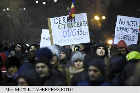 Aceştia au purtat pancarte pe care scria, printre altele, ‘Ruşine’, ‘Jos hoţii’, ‘Refuz acest abuz’, ‘Noaptea, ca hoţii’, ‘Liber la furat’, ‘Ne-aţi mâncat trecutul, ne salvăm viitorul’, ‘Dragnea nu uita, România nu-i a ta’, ‘De hoţi ne-am săturat, vrem un stat curat’, ‘Keep calm, dar nu ceda’.