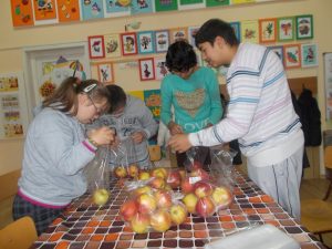 Sub blânda ei îndrumare, în acest an, elevii Școlii Gimnaziale Speciale, din Sfântu Gheorghe au participat la campania de strângere de fructe și legume: „Beneficiari, de regulă, ai acestei activităţi derulate de 8 ani sub egida Strategiei Naţionale de Acţiune Comunitară, un grup de 4 copii minunaţi, elevi ai Şcolii Gimnaziale Speciale din Sfântu Gheorghe, au hotărât anul acesta ca ei să devină voluntari. Şi astfel cu tenacitate au început pregătirile din timp, au lucrat cu măiestrie tablouri colorate din hârtie, pe care le-au valorificat prin expoziţii în Braşov. Din veniturile modeste realizate în urma hărniciei lor, s-au gândit să dăruiască şi ei, aşa cum deseori au primit şi ei de la alţi voluntari, spunând că <<dar din dar se face Rai>>. Şi astfel culoarea din tablouri au transformat-o într-o parfumată ladă cu mere aromate, pe care s-au gândit s-o ducă <<bunicilor>> de la Căminul <<Zathureczky Berta>> din Sfântu Gheorghe. Astfel curcubeul emoţiilor lor i-a însoţit în vizita la <<casa bunicilor>>, le-a luminat zâmbetul când au împărţit merele şi, cel mai important, a rămas impregnat în îmbrăţişările primte cu mult drag. Acum au povestea lor, au trăit importanta misiune de voluntari, au învăţat să dăruiască din hărnicia lor şi ştiu că o îmbrăţişare caldă vine întotdeauna de un un bunic.