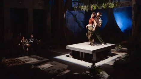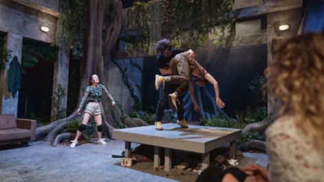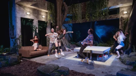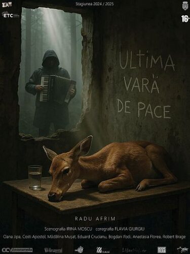 „​Ultima vară de pace”. O cazemată frisonantă și fermecătoare pentru o bogată și fascinantă pădure dramatică, ridicată de Radu Afrim în jungla necruțătoare a lumii în care ne-a imaginat teatral contemporanul alături de Irina Moscu, între melancolii, ciripituri de paseri neliniștite, ciuperci, stropi de ploaie și căprioare curioase ce ne dau târcoale printre obiecte vechi și pachete cu alimente aduse de acasă întru tovărășie de un grup de prieteni vechi care par să-și fi făcut deceniile pe aici, adunați la un ultim picnic postelectoral. Străjuit de trunchiuri bătrâne, ferigi uscate și mult beton armat, străpuns neașteptat de rădăcini viguroase, poate ale unui bun simț de la mama natură pe care l-am recuperat, la mustață, cine știe pentru cât timp, spre a mai rămâne (măcar un mandat) la adăpost de urgiile vremurilor. O cazemată care ne primește generoasă în cețurile și misterele naturii noastre cele mai intime, cu labirinturile la vedere, străbătute melancolic de valurile și ecourile cântecului unui lopătar dintr-un vals celebru, împinse discret din burduful acordeonului de năluca celor mai importante frisoane ce ne-au traversat recent șira spinării, întrupată în chip trist și blond în mijlocul scenei.