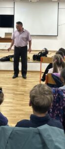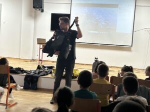 Evenimentul, desfășurat în sala festivă, a reunit curiozitatea copiilor, cu pasiunea profundă pentru lumea subacvatică, a celor doi invitați. Kolos, scafandru profesionist și un tânăr cu un remarcabil har pedagogic, le-a vorbit elevilor despre pașii spre succes, despre importanța regulilor pentru siguranță și le-a oferit o demonstrație detaliată a echipamentului de scafandru. Copiii au urmărit cu entuziasm chiar și filmulețe inedite, realizate recent în Egipt, în care cei doi scafandri explorau fascinanta lume de sub apă.