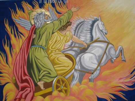 În icoane, fresce bisericeşti şi în reproducerile de artă Sf. Ilie apare într-o trăsură cu roţi de foc trasă de doi cai albi. În timpul perioadei sale pământeane se spune că Ilie ar fi săvârşit păcate grave, cel mai mare fiind uciderea părinţilor săi la îndemnul diavolului. Au fost lucruri cumplite pe care le-a ispăşit ulterior în moduri diferite. În cele din urmă Dumnezeu l-a iertat şi l-a urcat la Cer într-o caleaşcă cu roţi de foc trasă de bidivii înaripaţi.