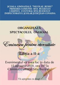 A II-a ediție a spectacolului „Eminescu pentru eternitate” este organizat de Școala Gimnazială „Nicolae Russu”, în parteneriat cu Inspectorarul Școlar Județean Covasna, Primăria comunei Sita Buzăului, Biblioteca comunală și Căminul Cultural din Sita Buzăului.