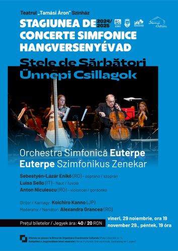 Publicul iubitor de muzică clasică este invitat să ia parte la concertul intitulat „Stele de Sărbători”care va fi susținut de Orchestra Simfonică Euterpe din Brașov în data de 29 noiembrie a.c., de la ora 19:00, în Sala Mare a Teatrului „Tamási Áron”.