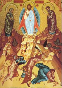 La un moment dat, în timp ce se ruga, chipul  lui Isus  s-a iluminat brusc, strălucind ca Soarele,  iar veşmintele-I modeste  au devenit „albe  ca zăpada”,  după cum scrie evenghelistul  Luca.