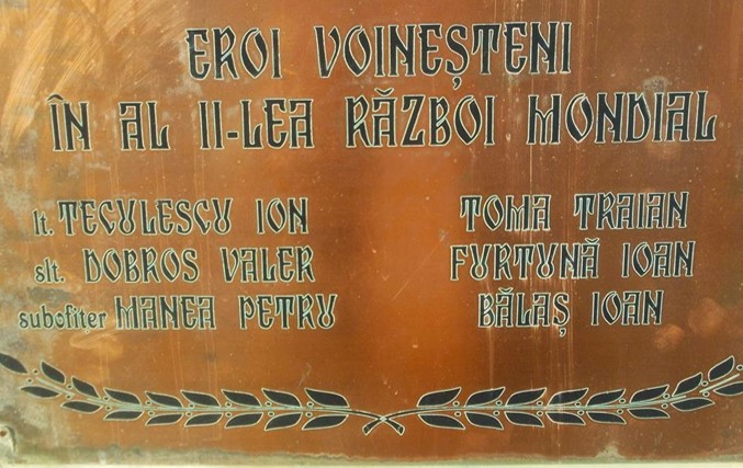 „Pe această placă avem 6 nume ale eroilor voineșteni căzuți în al Doilea Război Mondial. Am văzut numele acelea, dar nu știam ce și cum și fiecare unde a murit și ce a făcut pentru țară. Până când, acum trei ani, în arhiva Centrului (Centrul Ecleziastic de Documentare „Mitropolit Nicolae Colan” Sf. Gheorghe-n.red), la domnul Lăcătușu, am găsit această fotografie”, făcând referire la poza învechită de vreme, în care sunt frații Traian și Mircea TOMA din Voinești- Covasna.