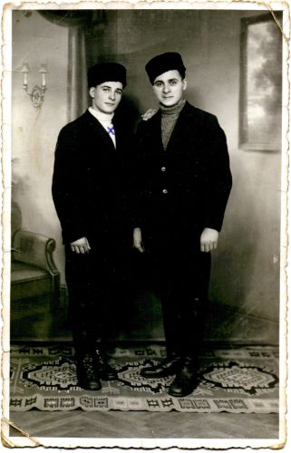 Fotografia este din 1940. „Era în toamna anului 1940 când s-a cedat Ardealul și au venit săcuii. Eu eram cu cârdul de 600 de negri pe Poligon la Sfântu Gheorghe și Nea Cojan cu cârlanii la Ilieni. Eu 18 ani-el 17.ani. „Faini băieți! Așa-i?” scrie pe spatele fotografiei.