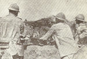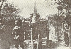 Tun de calibru 75 mm, aflat în dotarea armatei române, într-o poziție adăpostită de pe frontul de la Mărășești