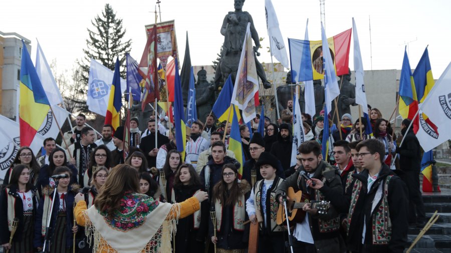 este o ordine aleatorie, dar prin ele, practic,  vreau să ajungă la dumneavoastră ceea ce vreau eu să transmit și ceea ce, cu siguranță, dumneavoastră credeți. (…) Despre țară: <<România este patria mea. Restul sunt doar țări>>- Octavian Paler. Despre dragoste de țară: <<Dacă nu aș fi român, aș trăi în România>>- Grigore Vieru (…); <<Unicul dor al vieții mele e să îmi văd națiunea mea fericită>>- Avram Iancu. (…) Despre unire și unitate: <<Dacă visul unora a fost să ajungă în Cosmos,  eu, viața întreagă, am visat să trec Prutul>> – Grigore Vieru. Despre demnitate și existență națională: <<Sau țara asta să fie într-adevăr românească, sau nici nu merită să fie>>- Mihai Eminescu. <<A renunța la românism înseamnă, pentru noi, românii, a renunța la viață, a ne refugia în moarte>> – Mircea Eliade. (…) Despre învățătură: <<Școală, cât mai multă școală, școală cât mai bună, școală cât mai românească >>- Constantin Anghelescu. Străinii despre noi: <<România? Da, îmi imaginez foarte bine: un steag care are la mijloc Roma și în jur numai raze>>- Victor Hugo. (…) Despre graiul nostru: <<Două lucruri am întâlnit pe lumea asta, zidite cu adevărat până la capăt: Biblia și limba română>> – Grigore Vieru.”- a spus prefectul Sebastian Cucu.