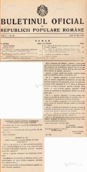 Decret de organizare a AGERPRES publicat în MO (Monitorul Oficial) nr. 32 din 23 mai 1949.