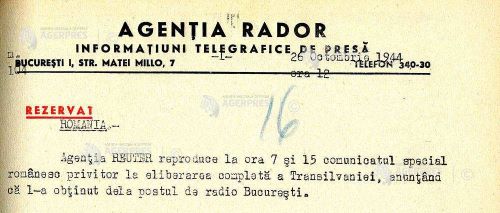 Ştire din arhiva RADOR/AGERPRES – Ştiri despre al II-lea Război Mondial (eliberarea Transilvaniei), 26.10.1944.