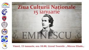 Direcția Județeană de Sport și Tineret (DJST) Covasna și partenerii săi vor marca vineri, 15 ianuarie a.c., Ziua Culturii Naționale la Întorsura Buzăului, prin proiecția imaginii poetului Mihai Eminescu pe Clădirea Liceului Teoretic „Mircea Eliade” dar și a unor secvențe din spectacolul „Tot ce-i românesc nu piere!” al Trupei de teatru T3 din localitate, precum și printr-o colectă de carte.