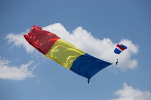 Și în acest an, Drapelul României care urma să fie înălțat pe catargul din dreptul Statuii Ostașului Român „a coborât din cer”, fiind adus de parașutiști ai Aeroclubului României și înmânat gărzii purtătoare de drapel.
